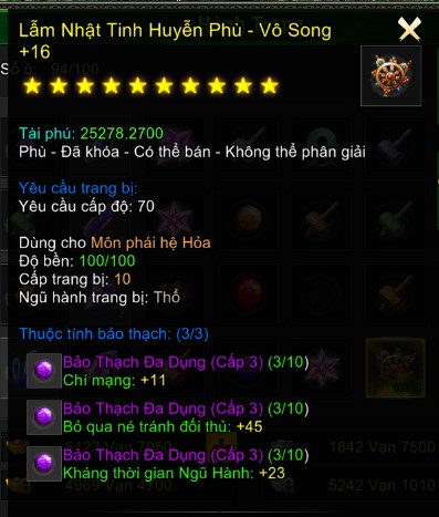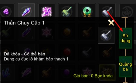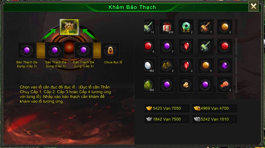 Cứ như vậy chúng ta đã khảm 3 bảo thạch lên 3 lỗ trên trang bị.