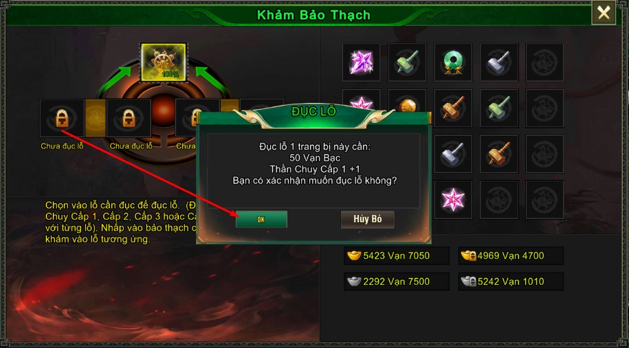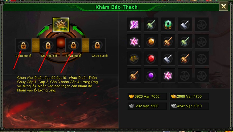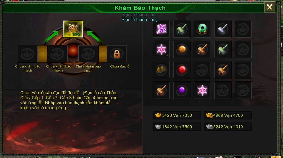 Cứ như vậy chúng ta sẽ đục tối đa được 3 lỗ trên trang bị.